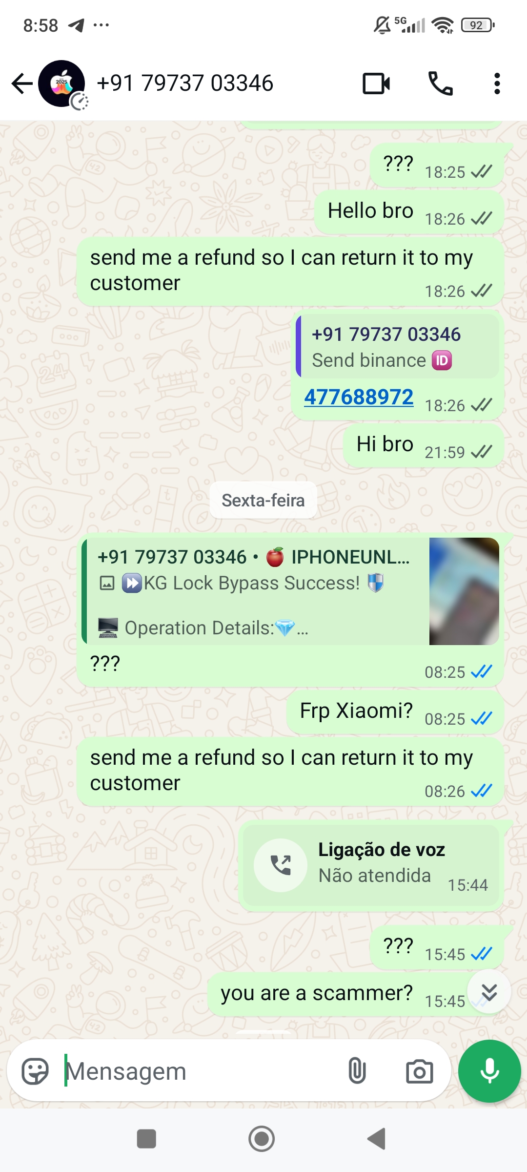Frp Xiaomi falou que fazia , não fez e não devolveu o dinheiro,chamei ele de novo me bloqueio