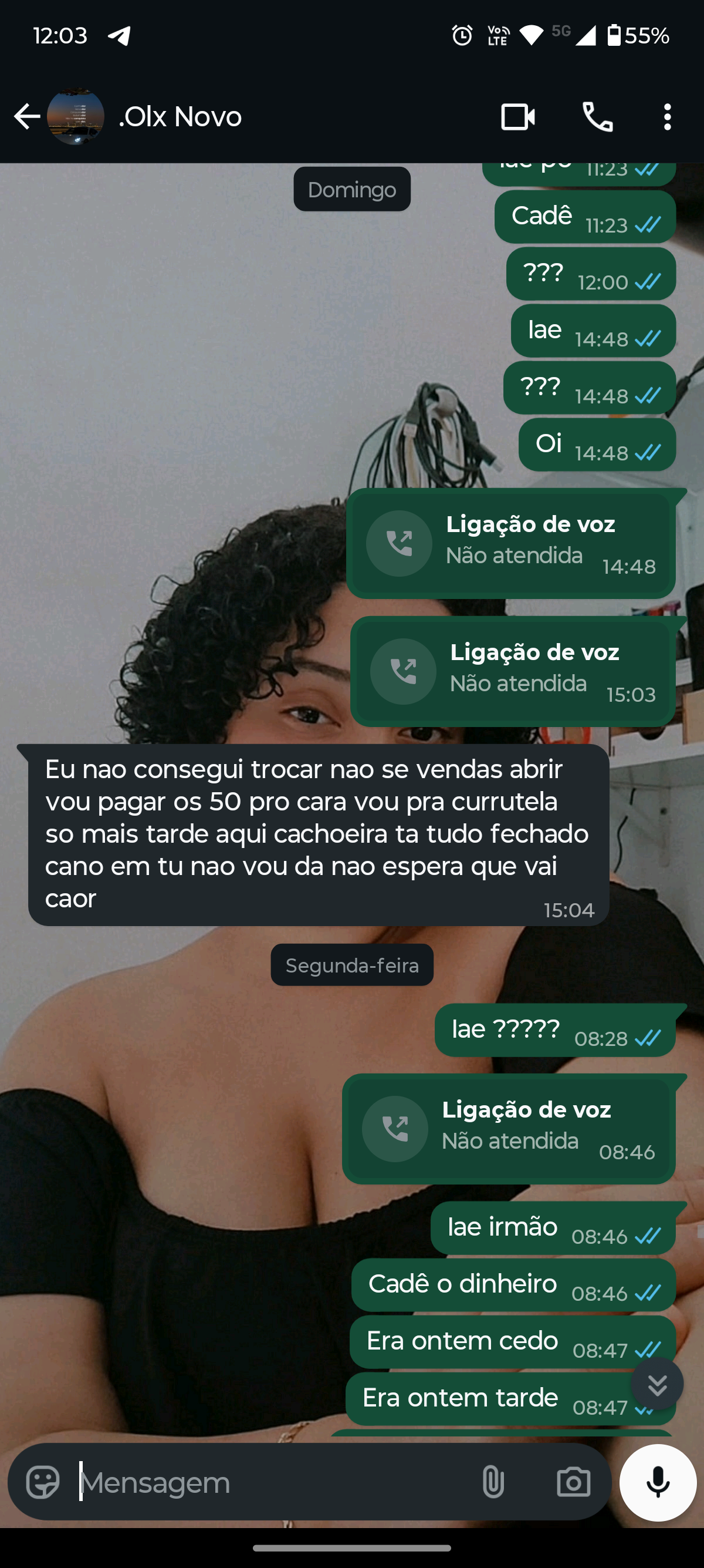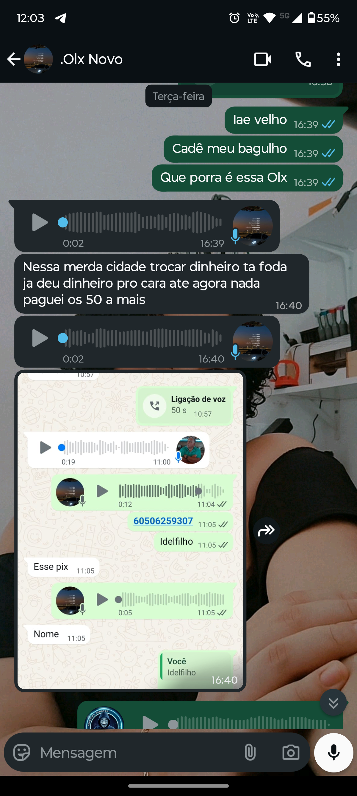No primeiro momento disse que iria trocar o valor de papel para Pix e que ao final do dia mandava, pois bem não mandou só ficou inventando desculpas e dizendo que onde ele morava não tinha ninguém para fazer o Pix. ( Os outros serviços ele sempre pagou em Pix)