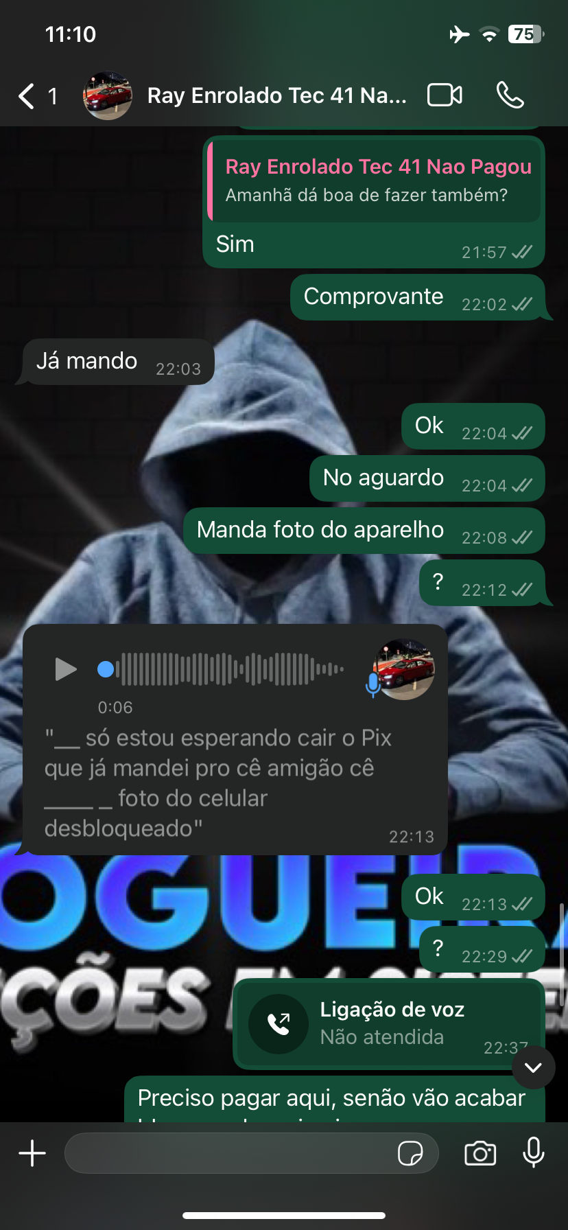 Fez um desbloqueio de um moto G22 e ficou enrolando para pagar e não pagou. Já tem mais de 24 hrs