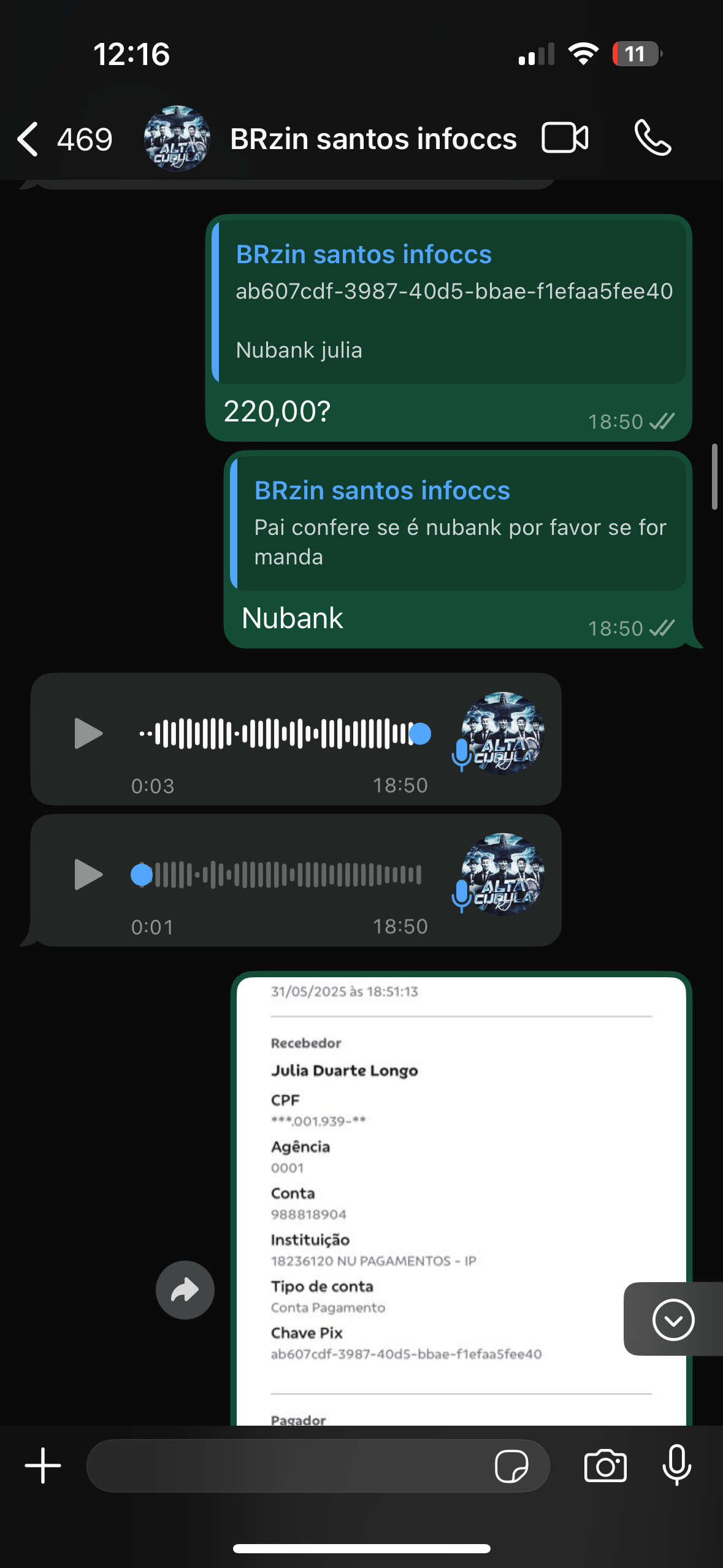 - Chave Pix: ab607cdf-3987-40d5-bbae-f1efaa5fee40 Nubank julia