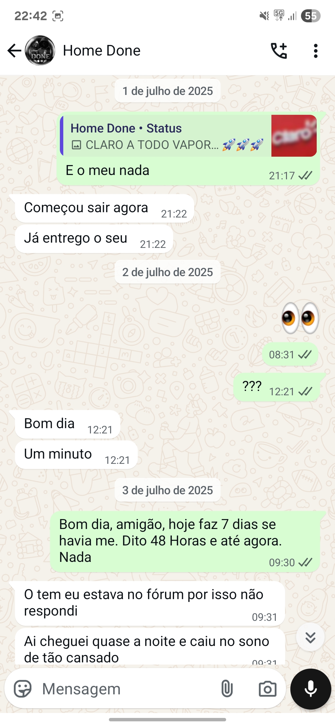 DIZ FAZER RETRIÇAO CLARO POREM NAO FAZ NADA PEDIU PIX ANTECIPADO JA TEM 20 DIAS E NAO DEVOLVE O DINHEIRO TODA HORA UMA DESCULPA